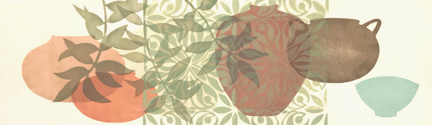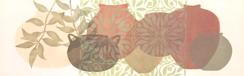 The shape and warmth of this handmade Japanese Mura Hoban paper has always suggested to me time and the long view. Much like a garden, the paper has been worked over for many years. In 2019 I began by referencing a timeless collection of Oaxacan vessels which provided the structure for what followed. I lived with these images for several years before seeing them as an integral part of a garden. Returning to Mexico post-covid I added the plant-referenced decorative screening that is influenced by so many seen in Oaxaca. This winter as I was concentrating on new drawings of leaf forms, light and shadow, I decided to complete this work with a layer referencing the Jasmines screening my view of the neighbour’s wall behind my studio.
